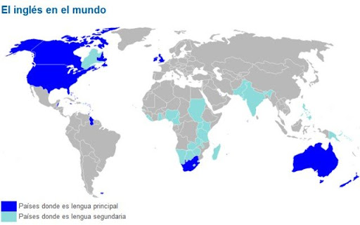 En este imagen o gráfica van a poder observar la lista de países donde se habla inglés a nivel mundial, el azul intenso indica que en ese país de habla inglés en la totalidad.